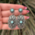 Sleeping Beauty Turq Concho Repoussé Stud Earrings Handmade Navajo Tsosie White