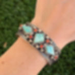 Rare Number 8 Turq Diamond Red Coral Scalloped Cuff Handmade Navajo Guy Hoskie