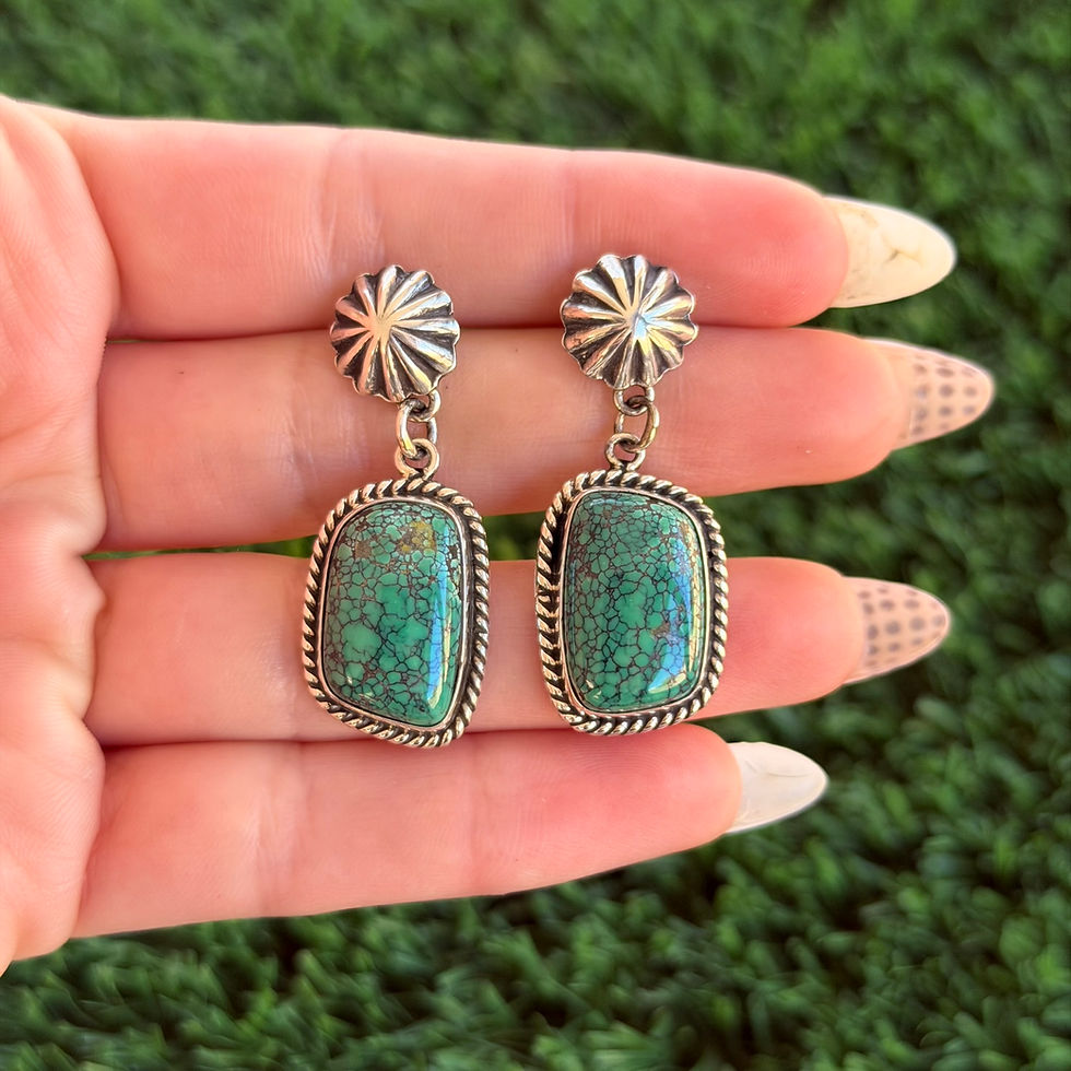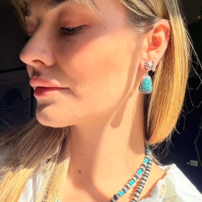 Turquoise Mountain Turq Slab Earrings Handfinished by Navajo Marilyn Platero