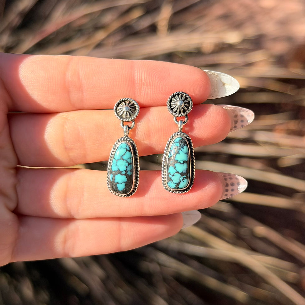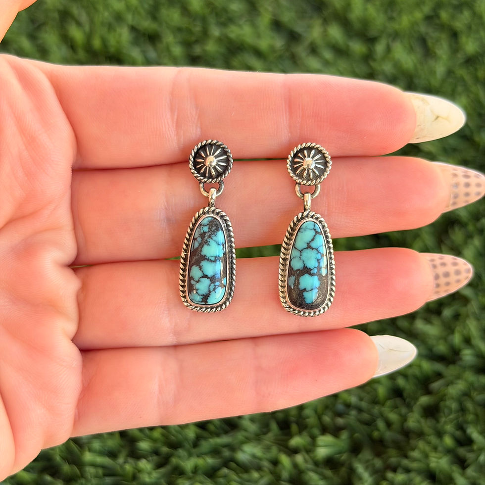 Rare Number 8 Turq Star Post Cold Chisel Earrings 1 Handmade Navajo Albert Jake
