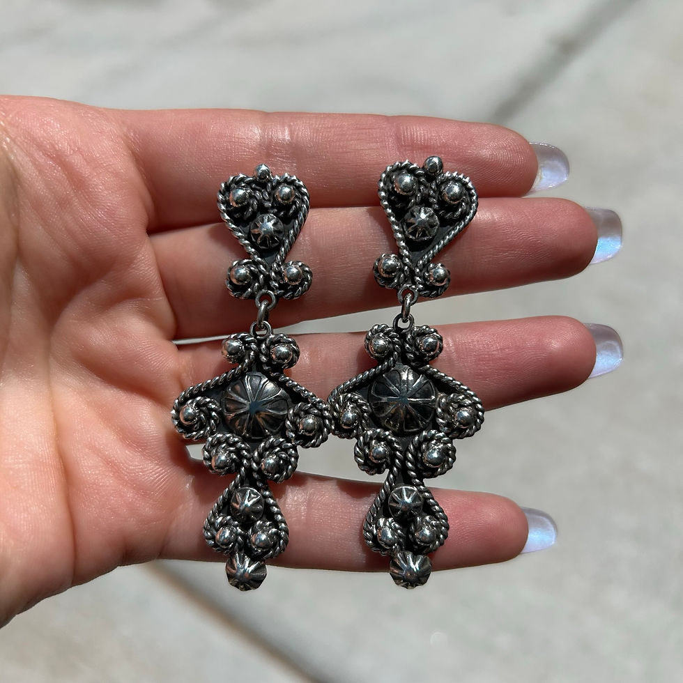 Sterling Silver Dangle Post-Back Earrings Handmade by Navajo Geneva Apachito