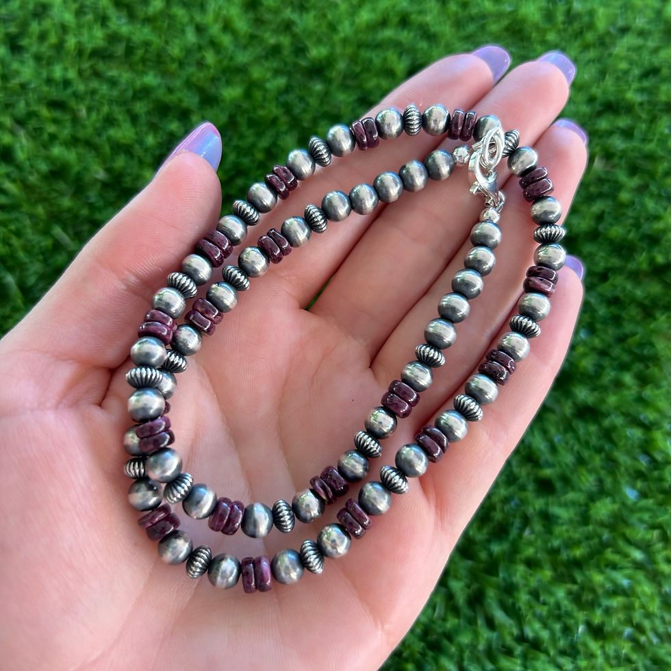 18" 6mm Purple Spiny Single Strand Navajo Pearl Necklace Navajo Handfinished
