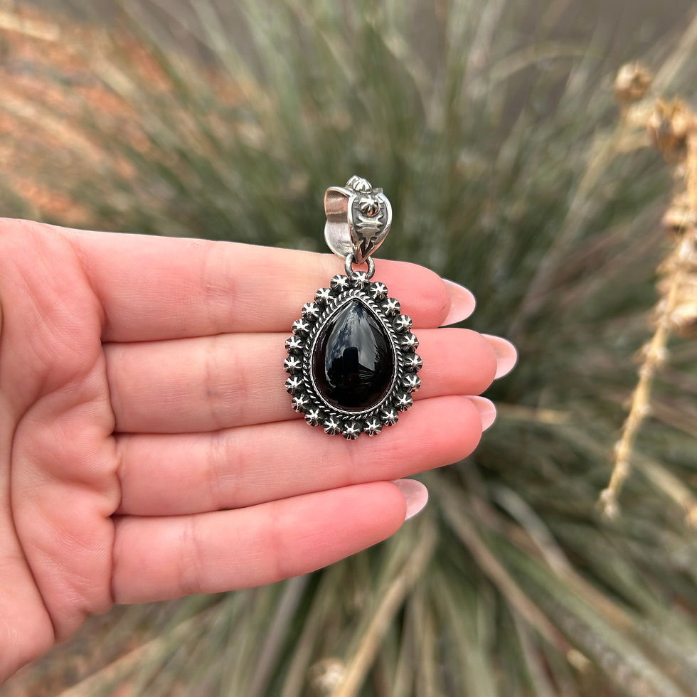 Black Onyx Pear Shot Pendant Handmade by Navajo Happy Piasso