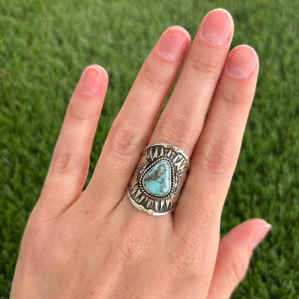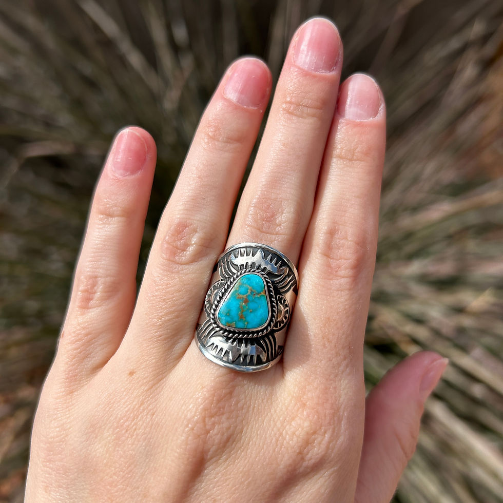 RARE Gem Royston Turq Elaborate Heavy Gauge Ring Handmade Navajo Albert Jake