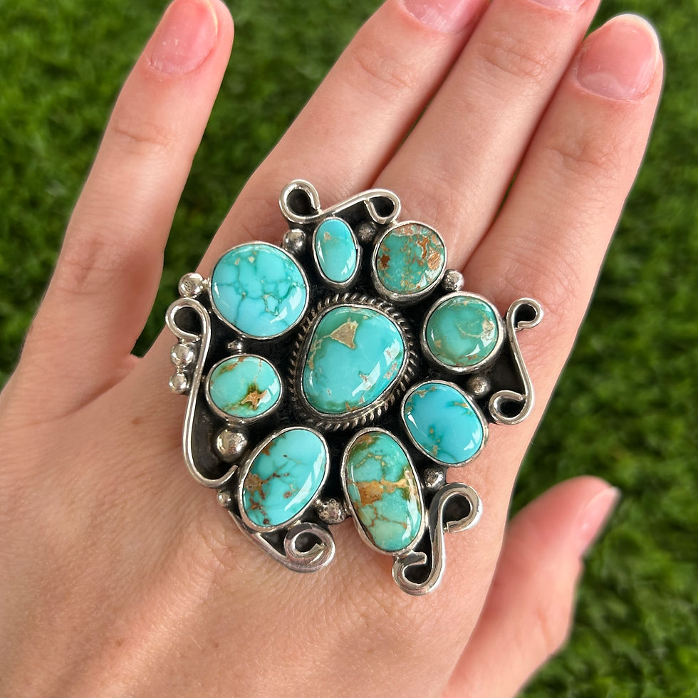 Royston Four-Corners Cluster Sterling Silver Ring Handmade Navajo Linda Yazzie