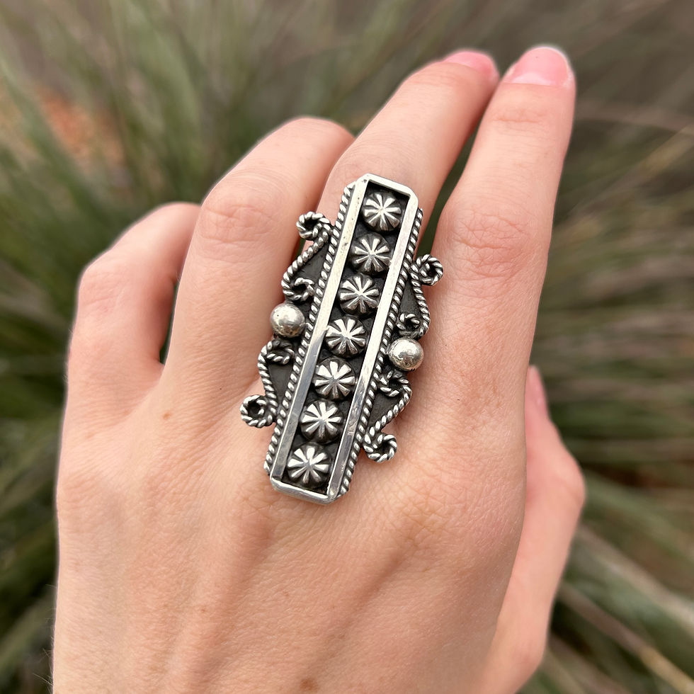 Royston Curly Cluster Sterling Silver Ring Handmade by Navajo Geneva Apachito